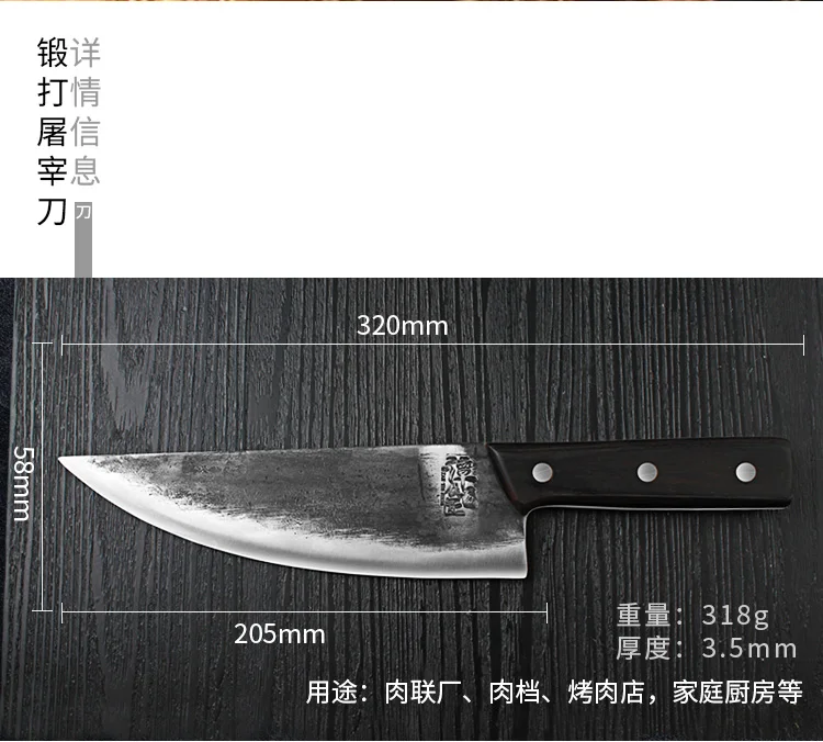 andmade Forged Kitchen Knife Mulberry Slicing Knife Professional Chinese Style Chef Cutting Meat Ve