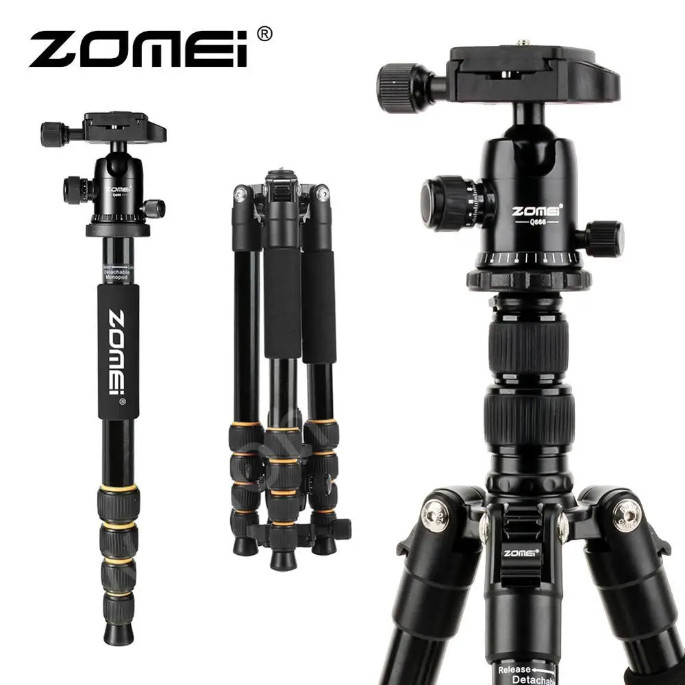 ZOMEI Portable Flexible Tripod Q666 Professional AluminumTravel Tripod Monopod With 360 Degree Ball