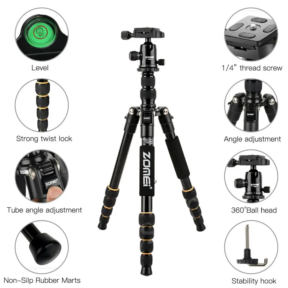 Review Top ZOMEI Portable Flexible Tripod Q666 Professional AluminumTravel Tripod Monopod With 360 Degree Ball
