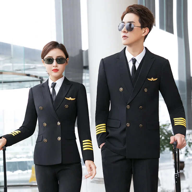 BEST QUALITY Aviation Captain Uniform Male Pilot Empty Uniform Professional Suit Overalls Korean Version The Sel