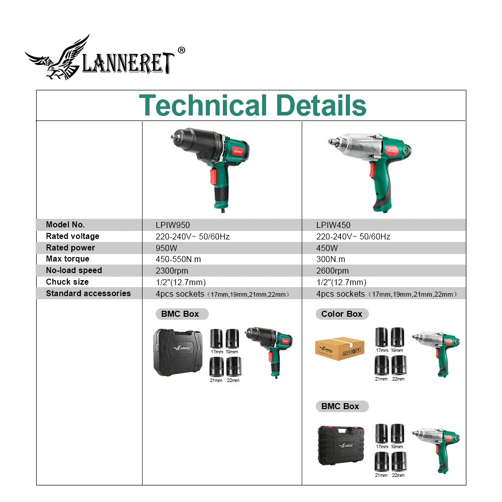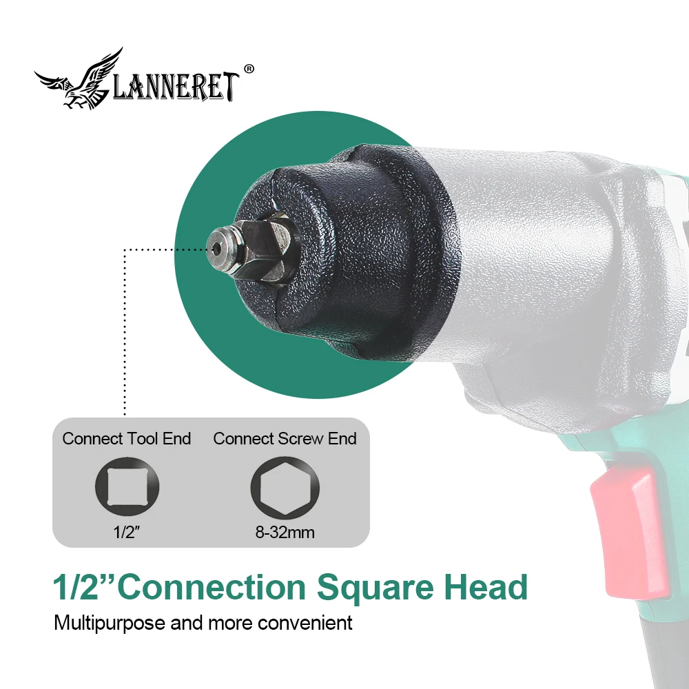 LANNERET Electric Impact Wrench Max Torque 1/2 inch Car Socket Household Professional Wrench Tire T
