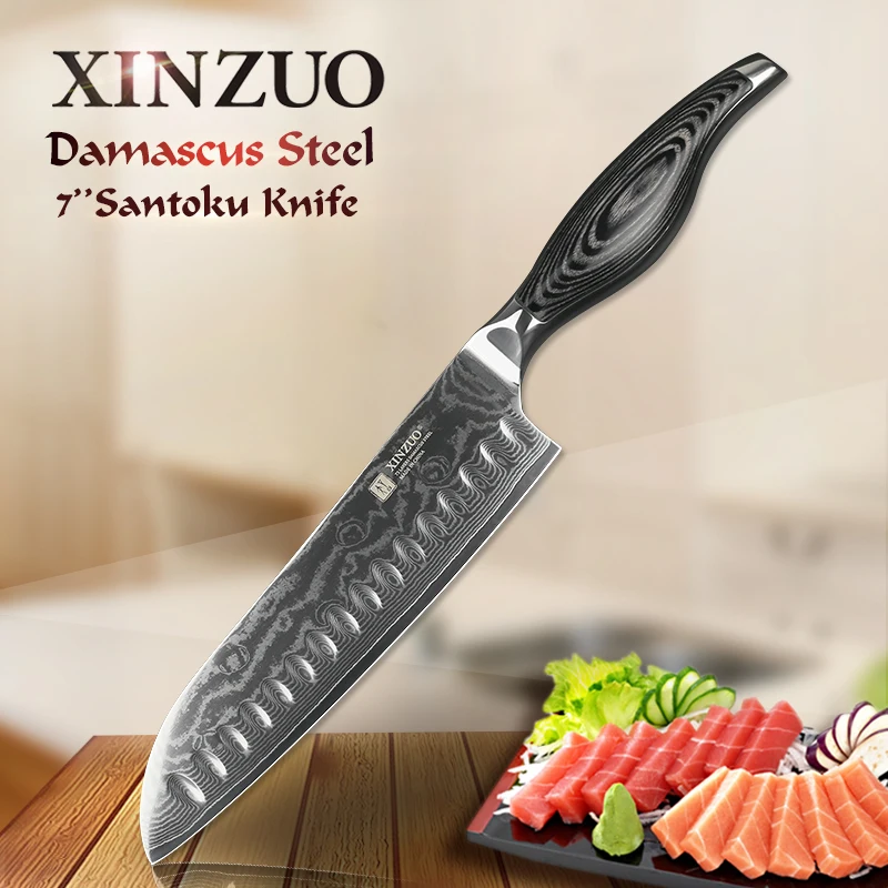 XINZUO 7 inch Japanese Chef Knives 67 Layers Damascus Stainless Steel Professional Santoku Knife Ki